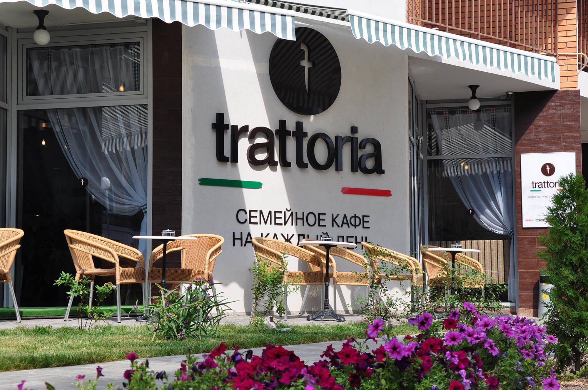This is both a rustic tavern and a restaurant, a bar and a sweet-shop, that is a whole mosaic of Italian life. All dishes here are prepared by the traditional Italian recipes. In the Trattoria you can order a salad “Caesar“, salad with seafood, Parma ham with pear, polenta, fettuccine with prawns, lasagna with spinach and mushrooms, risotto with turkey and beans, focaccia with pesto sauce, pizza “Four Seasons“, pizza “Bolognese“, grilled bream with vegetable mix, veal steak with fried potatoes. Guests can enjoy a homemade wine, brandy, champagne, and Lavazza coffee.