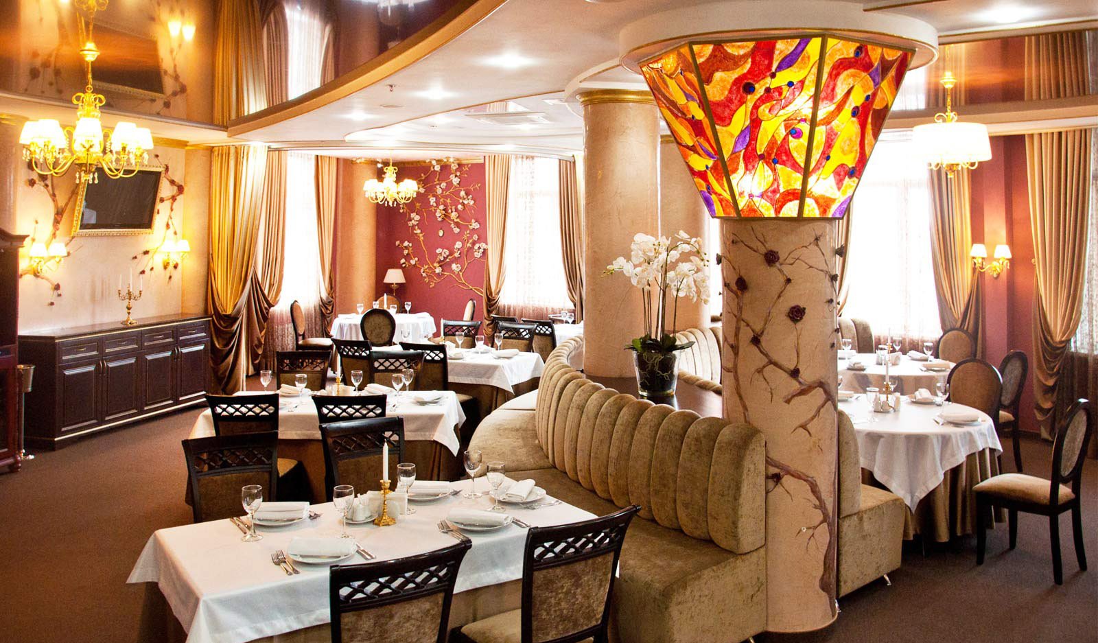 The menu offers European and Mediterranean dishes, a great wine list with different price categories. For non-smokers, there is a separate room. In the evenings live music is played. You can also play bowling or billiards here.