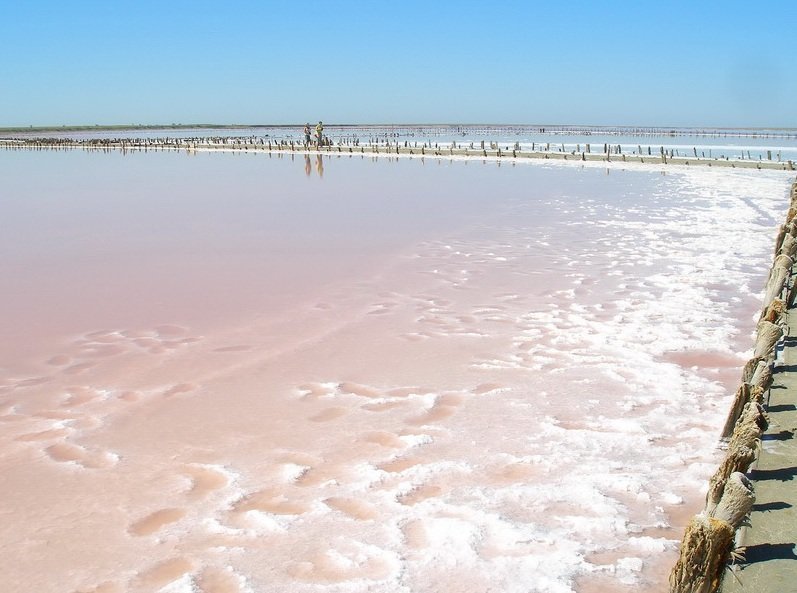 Since ancient times, the region is engaged in the extraction of salt, and today there is a salt plant. Here you can find the pink salt, rich in the carotene — algae growing in the lake contains it. In the future, the production of beta-carotene with pink brine for food and cosmetic purposes is possible. Every year tourists come to experience the healing qualities of Syvash water and mud.