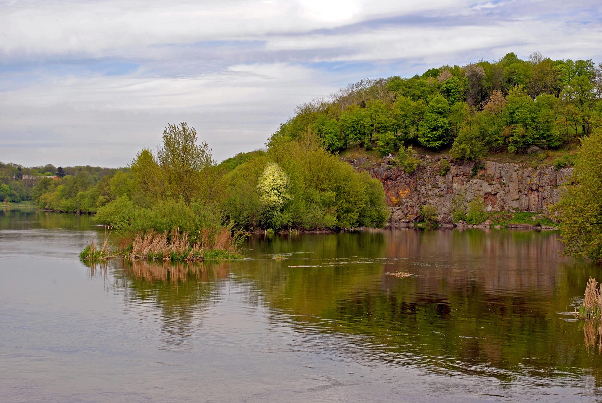 Scenic out of granite in the valley of the Pivdennyi Buh. Habitat of rare xerophytic groups.