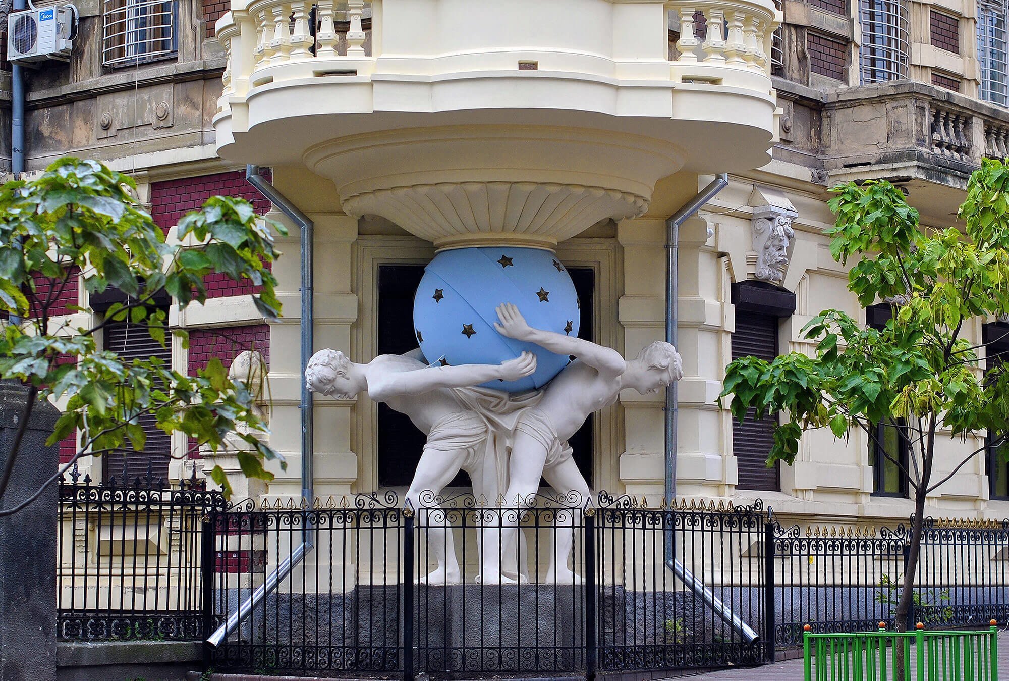 The complex of apartment buildings on the Hoholya street was created in XIX – XX century by architects Vlodek and Landesman. Houses belong to the family of Faltz-Fein, founder of the reserve "Askania Nova". House with the Atlanteans gained the most fame because of its statues by sculptor Fishel. The figures of the mighty Atlanteas, bent under the weight of the stellar globe, became the hallmark of Odesa. In front of the house you can also see the Atlantis supporting a balcony.