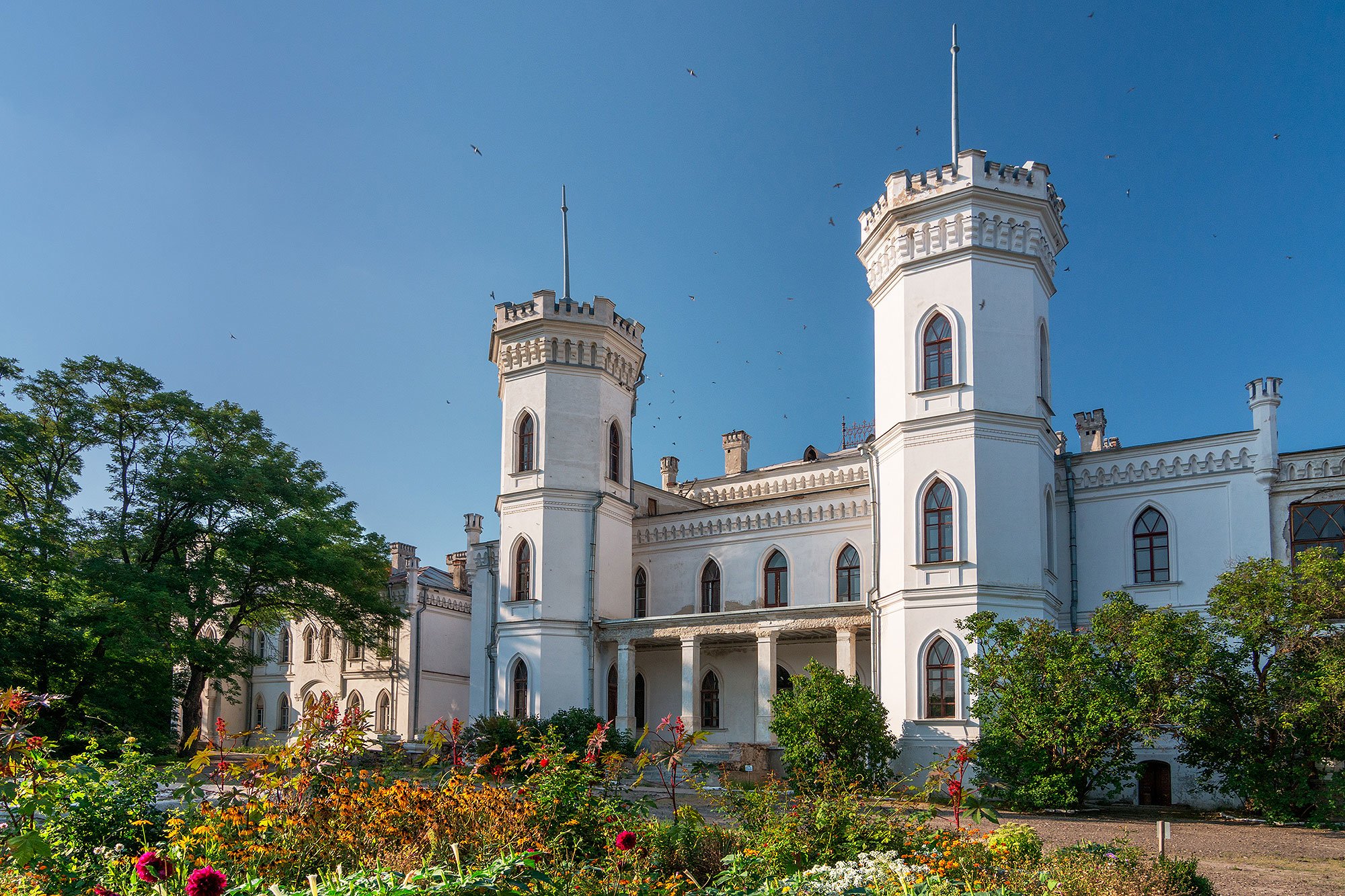 The central place in this ensemble holds the majestic two-storeyed palace, built in the Roman-Gothic style (XIX-XX centuries). The park zone was constructed as early as the beginning of the XIX century and remains to be well preserved. The composition of the plant collection is striking in its variety – there are about 200 plant species, including 150 exotic ones.