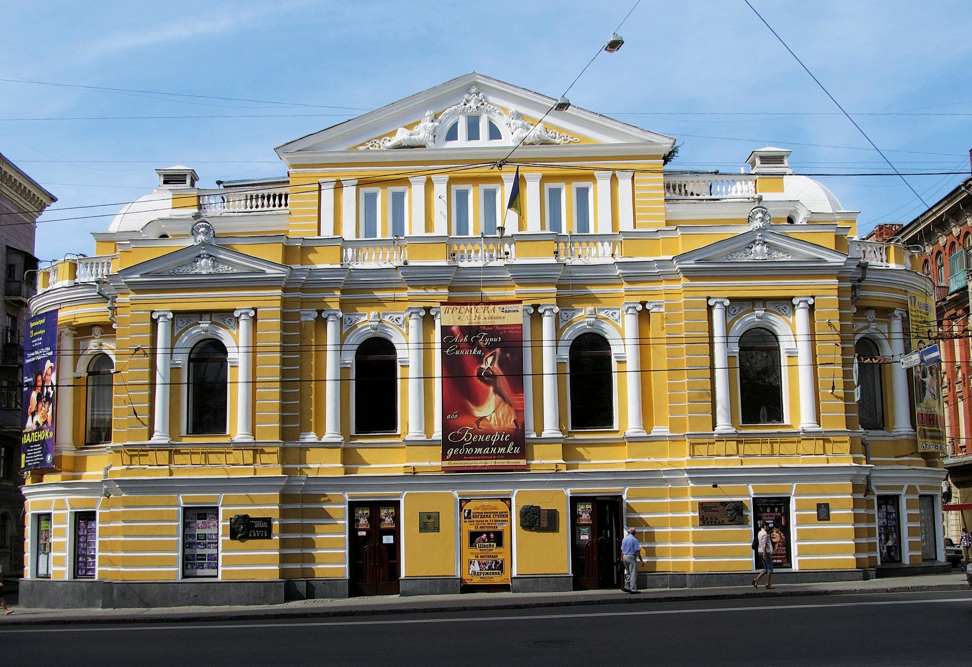 Kharkiv State Academic Ukrainian Drama Theater named after T. Shevchenko was founded in 1922 by the reformer of the Ukrainian theater, actor, director, folk artist of Ukraine Les Kurbas, who gave him the poetic name "Berezil ". Les Kurbas, Marian Krushelnytsky , Leonid Bykov – the most significant stars of the theater. In their honor, there are memorial plaques on the facade of the theater, and in front of its entrance to the cobblestone "literary stometrivka" – a memorial sign, dedicated to literary Kharkiv beginning of XX century. Since the theater served as a place for meetings with readers of Pavlo Tychyna, Sergei Yesenin, Volodymyr Sosyury, Alexei Tolstoy, Volodymyr Mayakovsky and others, the literary associations Pluh and Vaplite acted there.