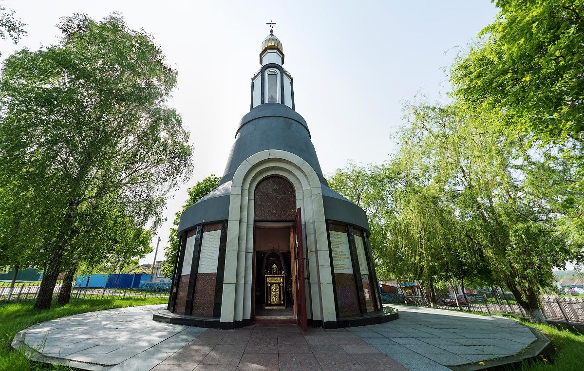 In memory of this event in 2004, a chapel was opened in the form of a bell. The author of the project is Anatoly Deineka, Honored Architect of the Ukrainian Soviet Republic. The interior of the chapel is rather modest: at the top you can see a wall painting, there is a candlestick, where everyone can put a candle for the peace of the dead. Also there is a unique icon of the Blessed Virgin, carved on a cypress tree.
