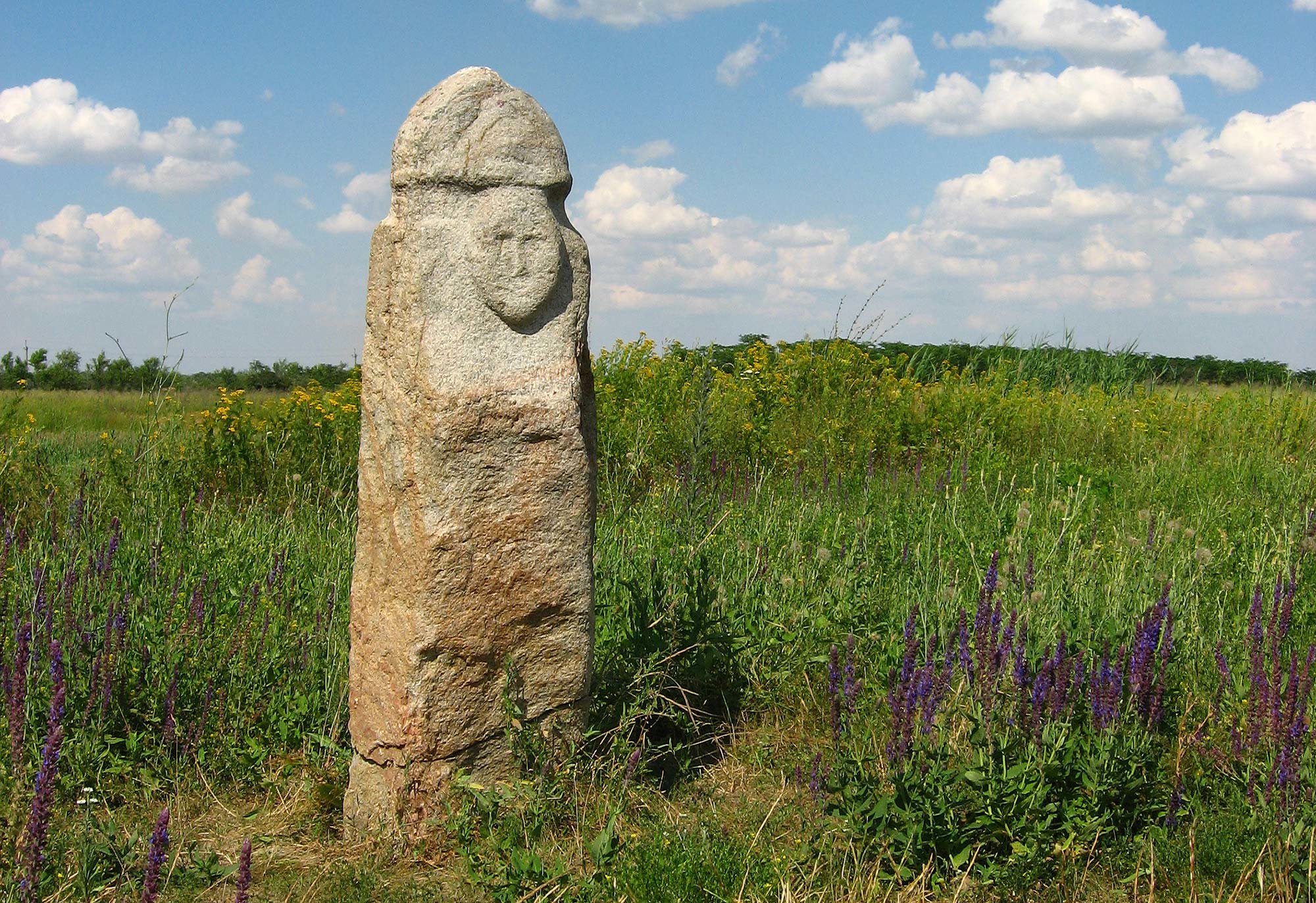 Near Melitopol, on the banks of the Molochna River, there is the «Stone Grave» reserve, that occupies an area of 15 hectares, and has a form of sandstones. There is no analogues to these hills, and their interpretation remains a mystery. When the Sarmatian Sea retreated back, 14 million years ago, a hill of sand was exposed, and eventually it became a solid monolith. Under the influence of natural factors, the hill was covered with cracks and boulders slipped to the ground. There appeared a large number of caves and grottoes that have always attracted people here. Ancient tribes settled alongside «Stone Grave» and used this place as a sanctuary. In total, there are 68 grottoes and caves, in which many unique drawings - from the Stone Age to the Bronze and later times. Here are depicted bulls, horse carts, boats, wild animals, hunting scenes and many other petroglyphs. Special investigations have proven that «Stone Grave» is a place of powerful energy. On the hill there are five stones with positive energy and one - with a negative. At the various times, the Supreme Lama of Nepal, the explorer of the ocean, Jacques Yves Cousteau and representatives of the Ukrainian and world political elites attended the «Stone Grave» at various times. Each year, beginning in 1932, archaeological excavations and expeditions that reveal new memories are taking place here. Incidentally, here, by the way, was discovered the most ancient in the world «protosumer script». Annually «Stone Tomb» is visited by about 50 thousand tourists. In 2007, the reserve was listed on the UNESCO World Heritage List.