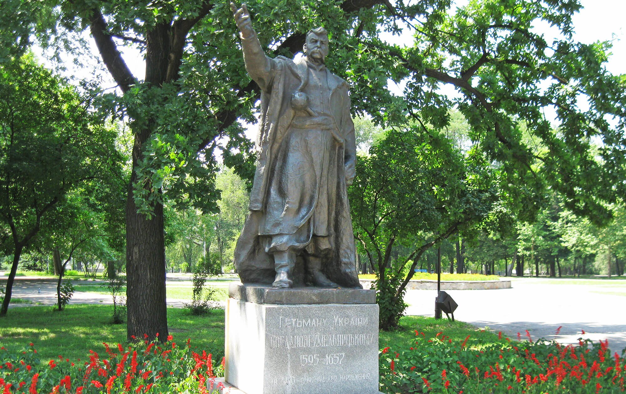 The monument to Bohdan Khmelnitsky was established for the 400th anniversary of the birth of the hetman in the Metallurgists' Park in 1995, on the street bearing the name of the hetman. Bohdan-Zinovy Mikhailovich Khmelnitsky is the hetman of the glorious Army of Zaporizhzhia Nizove, commander and statesman, organizer of the War of Liberation against the Commonwealth. Bohdan Khmelnitsky – the person is legendary and contradictory. But in one thing all agree – this is really a great statesman who laid down his life for the Faith and the Motherland, as it is supposed to be a real Cossack. The monument is located in front of the central entrance to the Metallurgists' Park. Nearby is the famous Zaporizhzhia stadium «Slavutich-Arena» and one of the most famous monuments of the city – Dniproges.