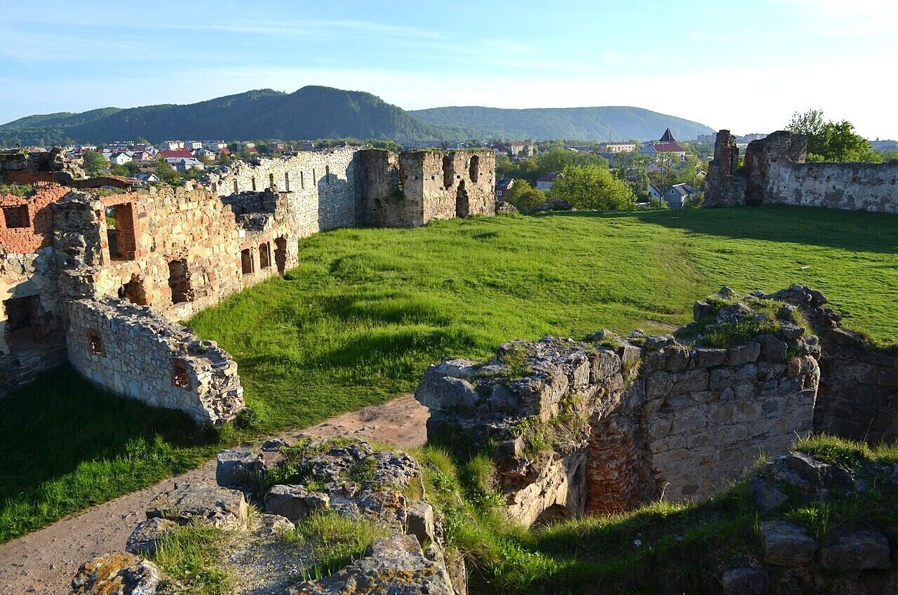 Constructed in the shape of an irregular pentagon, the castle was carefully designed for defense: massive stone walls up to 1.8 meters thick, five watchtowers equipped with loopholes, a wide water-filled moat, and a strategic location on the route to the Carpathians. Its architecture is a vivid example of medieval military engineering.