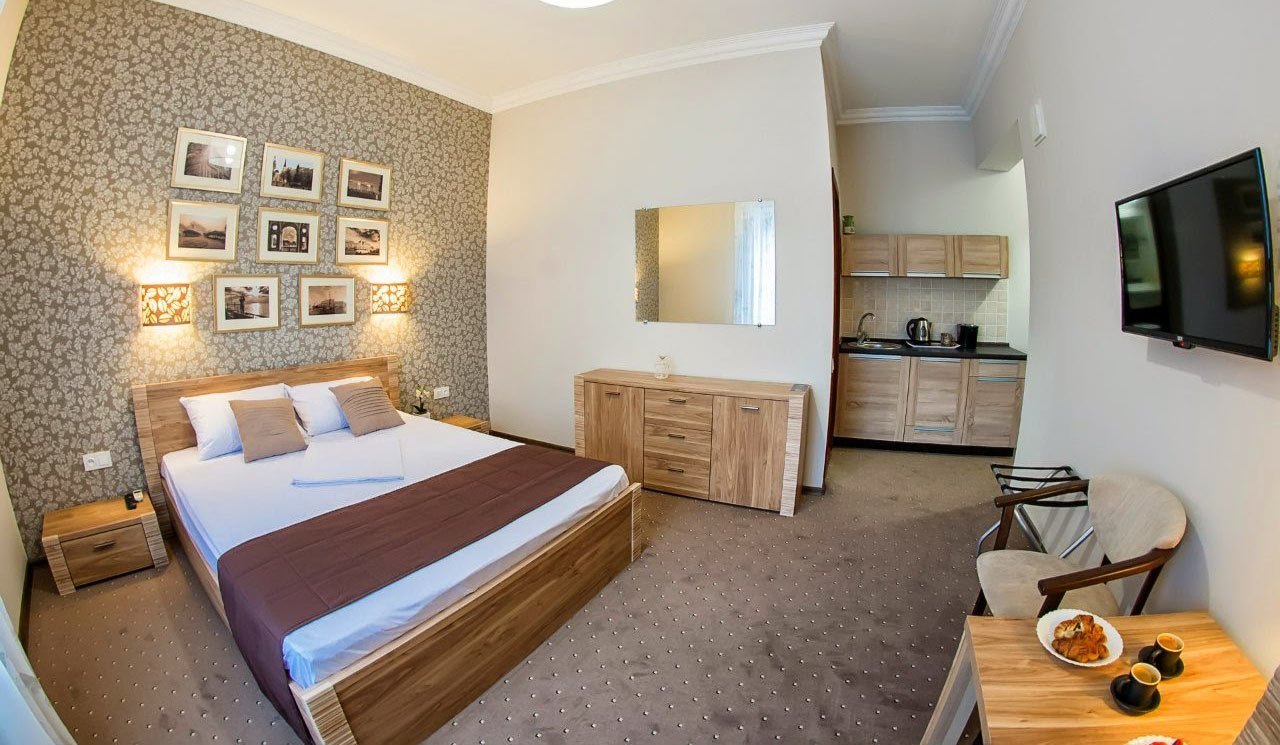 Готель має просторі та світлі номери з дизайнерським ремонтом, зручною меблями та наявністю всіх необхідних засобів комфорту - Wi-Fi, інтернету, кабельного ТБ. У кожному апартаменті є окрема ванна кімната, деякі номери з кухонною нішею і балконом, з якого відкривається вид на вулицю Дерибасівська.