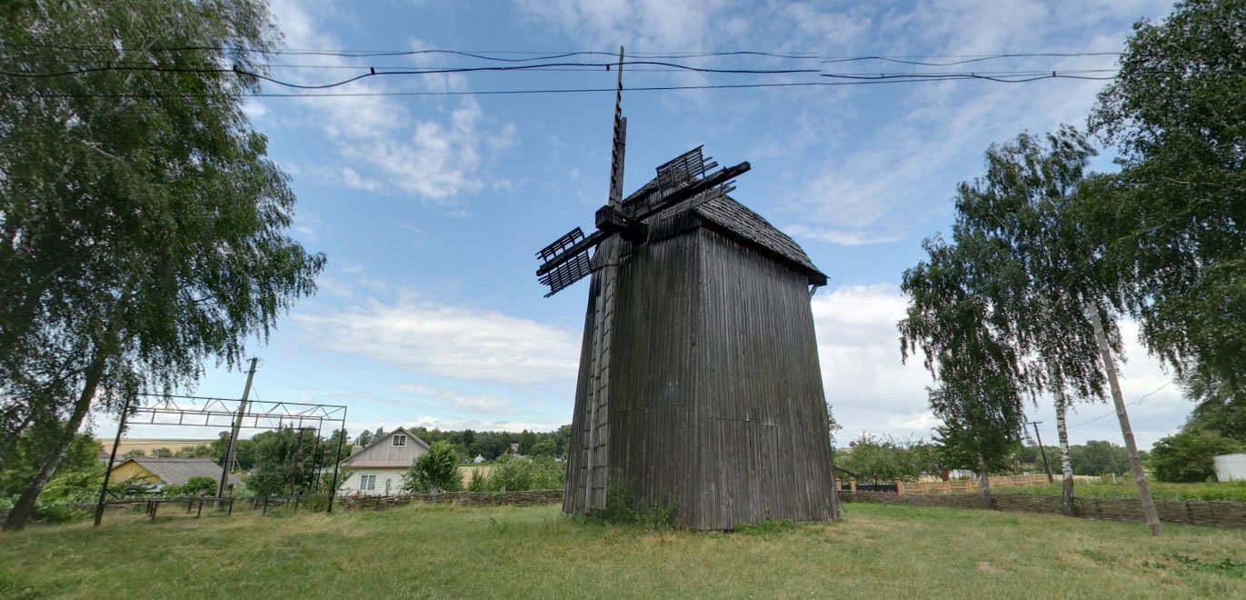 Такі млини не мали різьблених прикрас чи ганків. Майстер, який збудував вітряк - чех Іван Клічнік. Млин належить до стовпових млинів. Стіни вертикальні, каркасної будови, обшиті дошками до самого низу. З чотирьох кутів вітряк спирається на колодки.