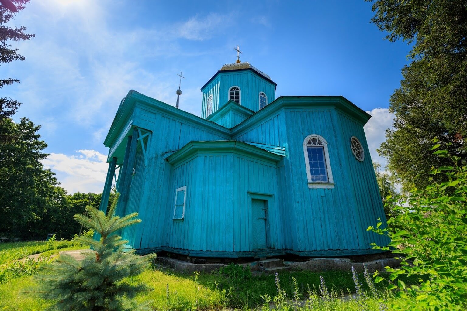 Святиню звели у 1868 році на місті більш старішого храму. На перший погляд церква здається значно старішою, до того ж загадковою і трохи містичною, такий ефект досягається внаслідок потемніння деревини. Але незважаючи на свій вигляд святиня діє і якщо вам пощастить потрапити у середину, то ви зможете побачити оригінальні розписи на стінах.