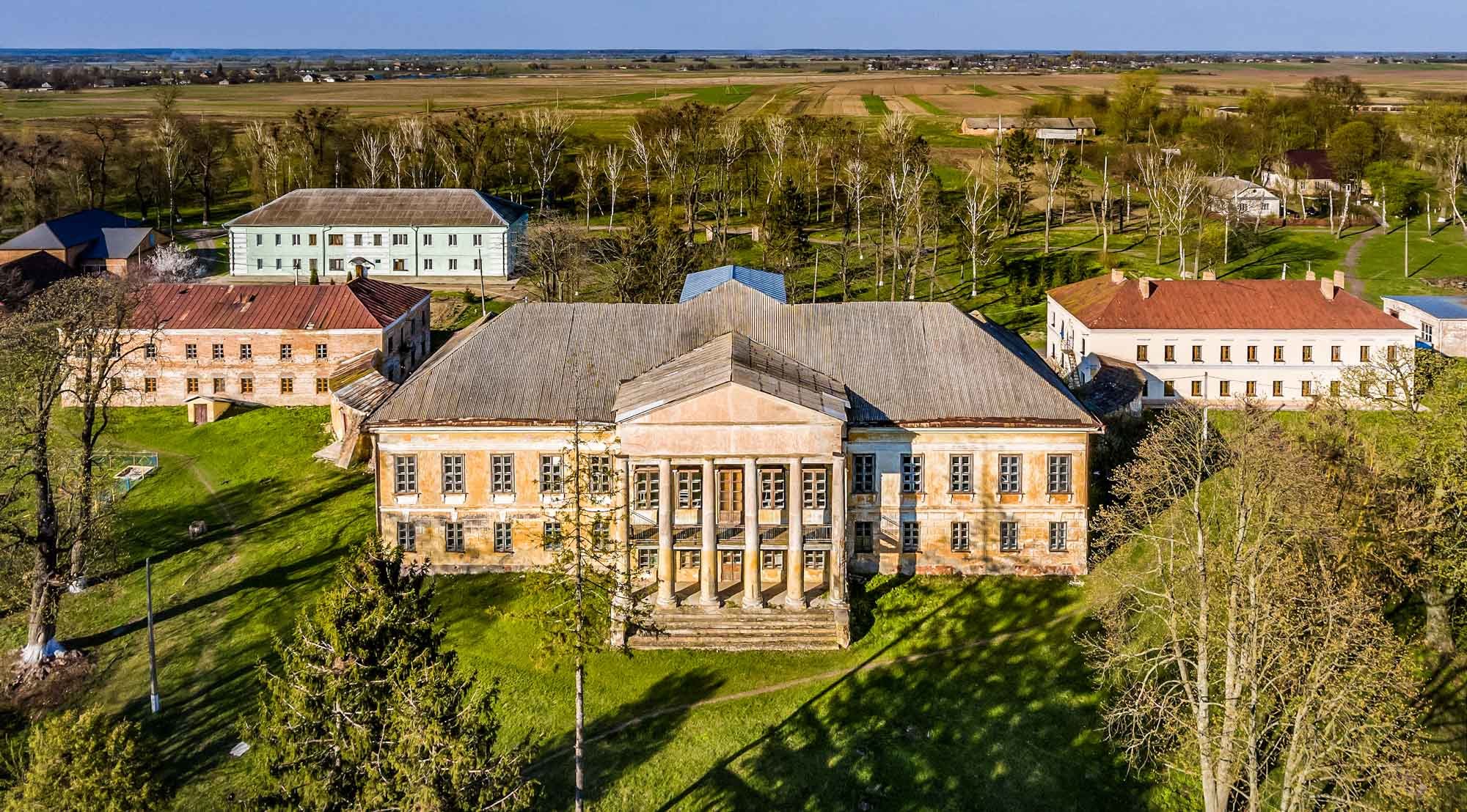 Палац Стецьких – частка маєтку Стецьких, яка найкраще збереглася. Будівля розташована посеред залишків парку та саду (до палацу веде яблунева алея), поруч знаходяться два флігелі. Палац і флігелі з’єднують симетричні дугоподібні галереї.