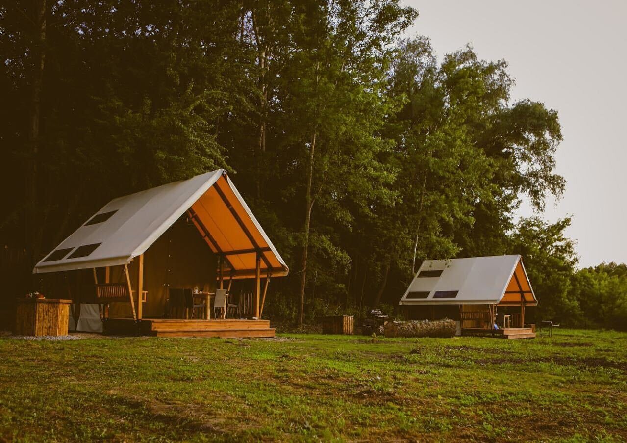 Поряд з глемпінгом «Шатро» знаходиться озеро, де можна ловити рибу, і кінна садиба, де можна попрактикуватися у верховій їзді.