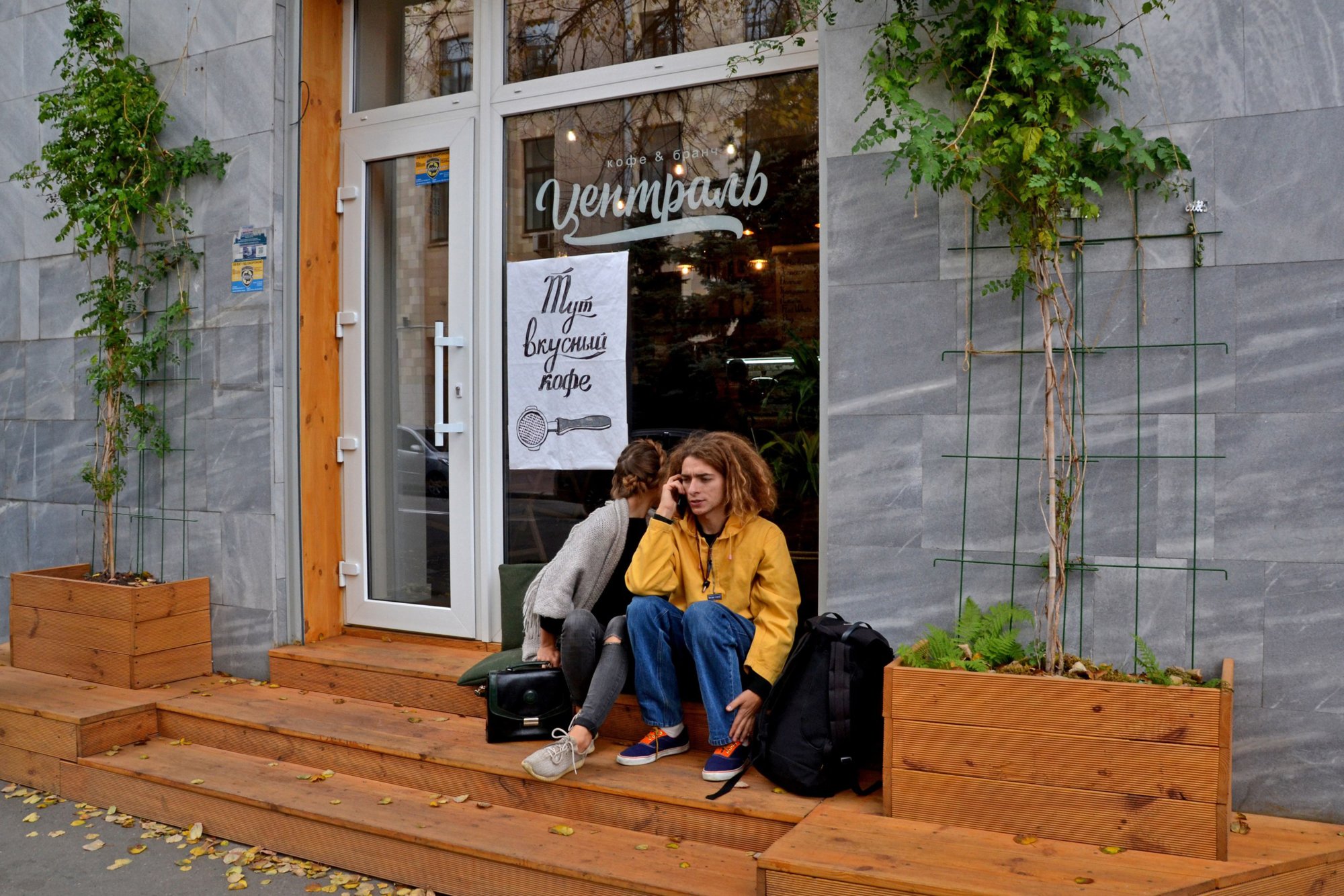 Незважаючи на те, що у кав'ярні немає яскравої вивіски, та й якийсь активної реклами, тут досить людно. Столики розташовані досить тісно. Хтось просто розмовляє за чашкою кави, хтось працює на ноутбуці, хтось самотньо читає.