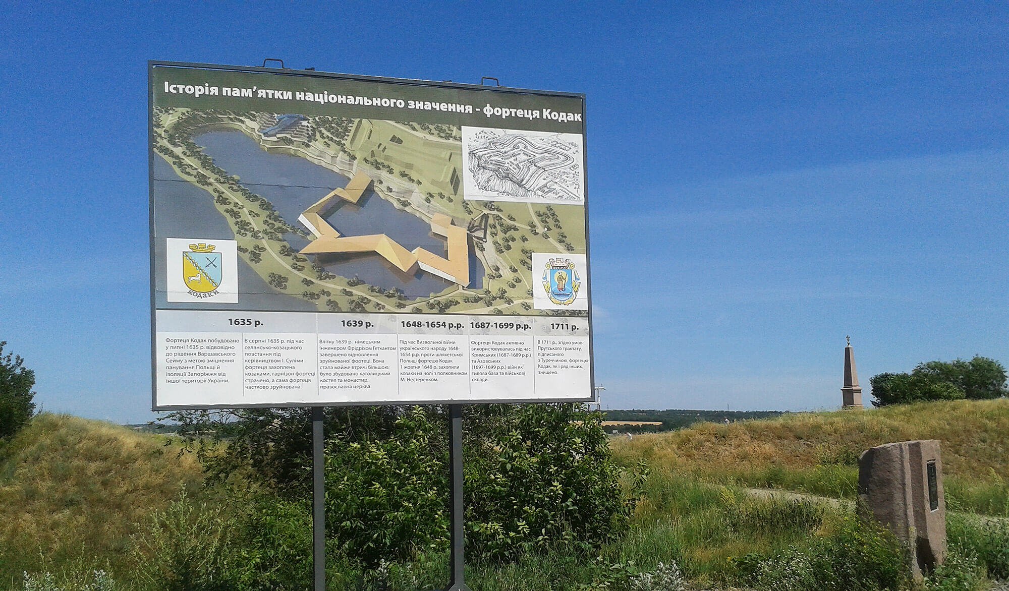 Колись у давні часи фортеця Кодак, чия назва складається з двох тюркських слів – «кой» (селище) та «даг» (гора), була настільки важливою у фортифікаційному сенсі, що її називали ключем до самого Запоріжжя. Вигідне місцезнаходження та традиційна для таких споруд форма давали можливість полякам, що збудували її, відгородитися від українців. Цікаво, що керував будівництвом фортеці француз: інженер на прізвище Боплан отримав для будівництва шалені на ті часи гроші – більше ста тисяч польських злотих.