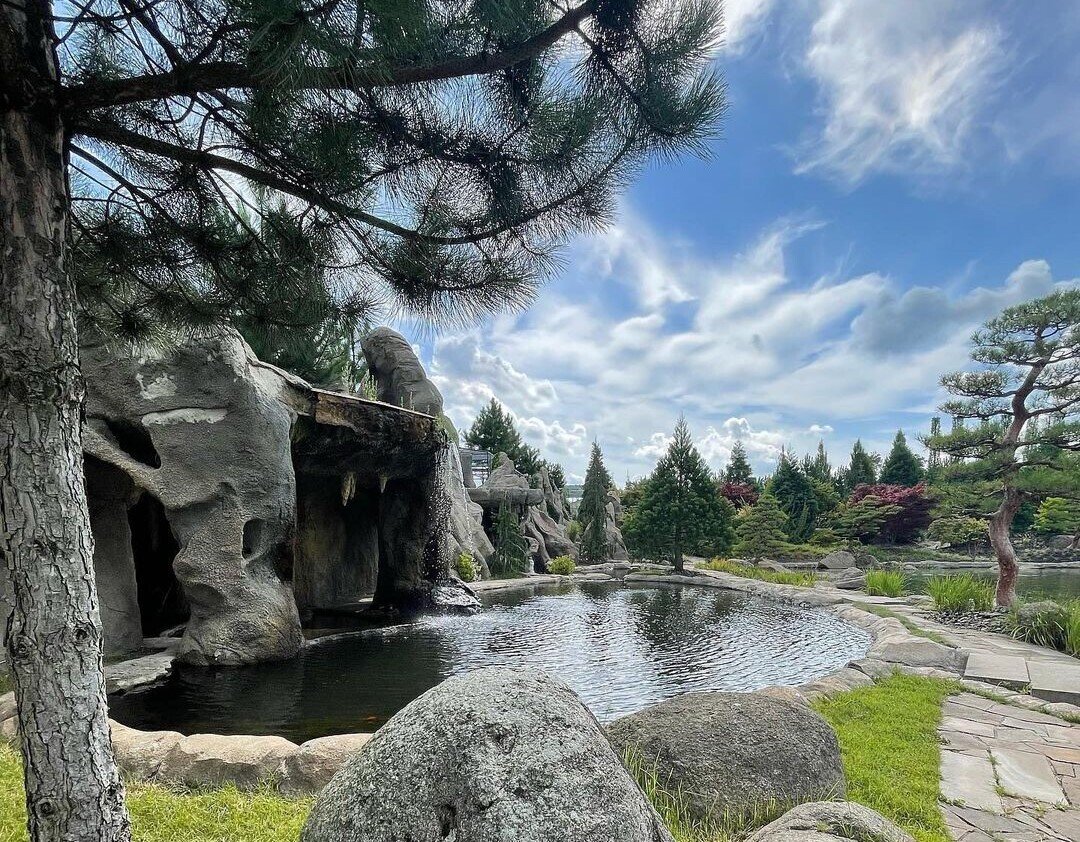 На 25 гектарах розмістилися тематичні зони у різних стилях, мальовничі водоспади, японський сад, артоб’єкти, а також кафе й теплиця з екзотичними рослинами, які можна придбати. Тут можна не лише зробити неймовірні фото, а й влаштувати побачення, відпочити від міської метушні чи відвідати майстер-клас.