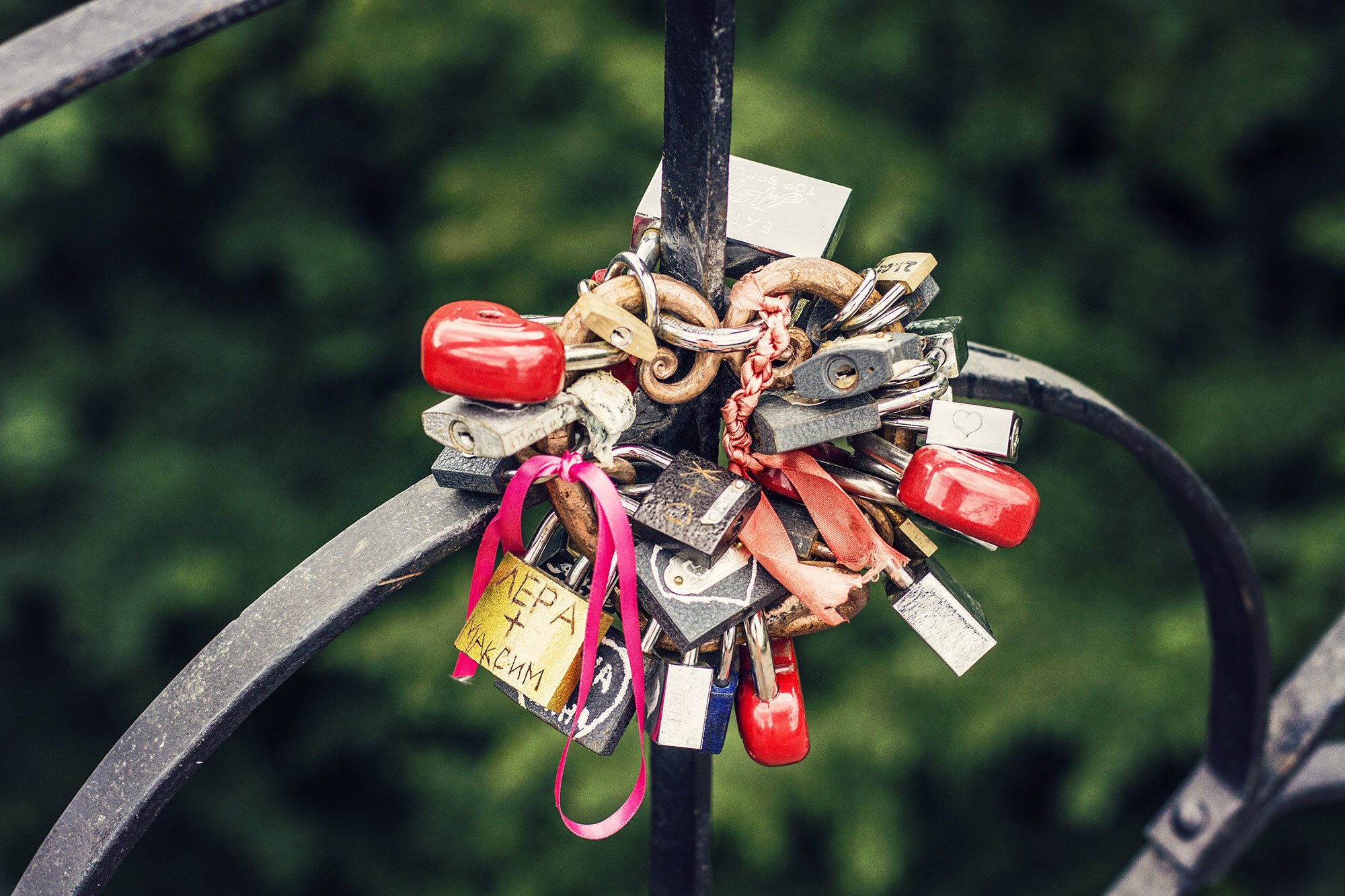 Містком для закоханих він став через те, що з нього відкривається гарний вид як по ліву сторону - на центр Києва, так і з правого боку - на лівобережну частину міста. Взагалі, міст закоханих - символічна і неофіційна назва мостів по всьому світі, які, за традицією, закохані і молодята прикрашають символами любові - замочками, стрічками і написами. Та не всім це до вподоби. Наприклад, у Флоренції, де з одного моста в рік знімали до 400 кілограмів заліза, тамтешньому меру, мабуть, це набридло, і за розвішування «замків кохання» він ввів штраф в розмірі 50 євро.