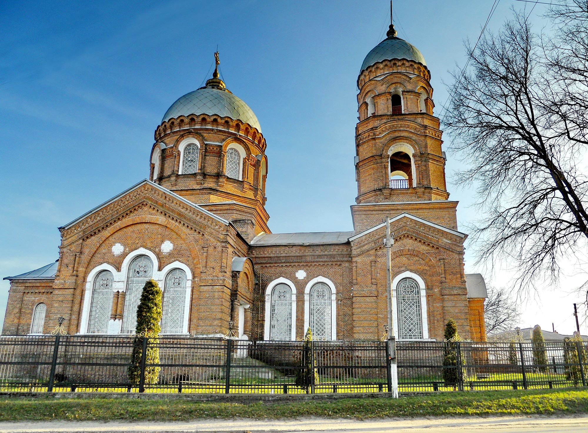 Миколаївська церква в Лебедині була зведена в 1890 році архітектором Володимиром Немкіним, який спроектував безліч культових споруд в Харкові. Згідно з іншими джерелами, будівництво храму слід датувати 1912-1914 роками. Церква є класичним зразком популярного на той час «цегляного стилю», який поєднує в собі елементи ренесансу та візантійського стилю. Церква хрестоподібна в плані, головну роль в композиції відіграє триярусна дзвіниця. Будівля щедро прикрашена декоративними елементами: карнизами, арками й дентикулами.