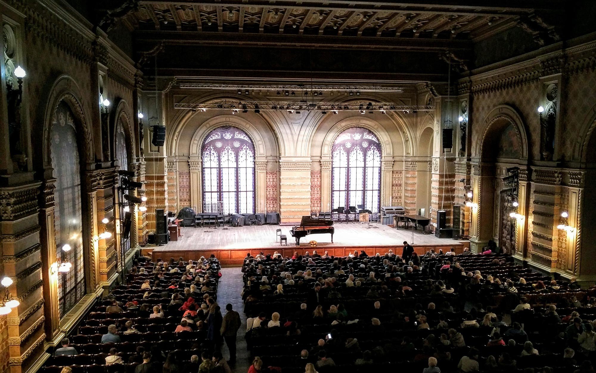 Філармонія знаходиться в історичному центрі Одеси. Побудована у 1899 році будівля спочатку призначалася для проведення біржових торгів, і тому в ньому знаходилась нова купецька біржа, яку звели замість старої біржі, що була на Приморському бульварі. Ця необхідність була викликана збільшенням експорту зерна через порт міста, появою залізниці і, відповідно, зростанням торгових угод. У радянські часи, коли планова торгівля прийшла на зміну біржовій, споруда змінила своє призначення: багато років тут розташовувалися різні суспільно-державні організації, проходили пленарні засідання, організовувалися літературні вечори. А з 1946 року будівлю біржі зайняла Одеська консерваторія.