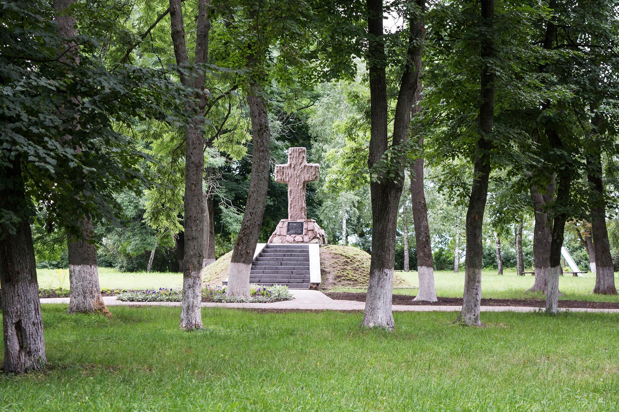 Цікаво: Пам’ятник не випадково виконаний у виді хреста, адже це місце, по суті, є братською могилою. Останки захисників міста були виявлені під час археологічних розкопок та перепоховані разом.