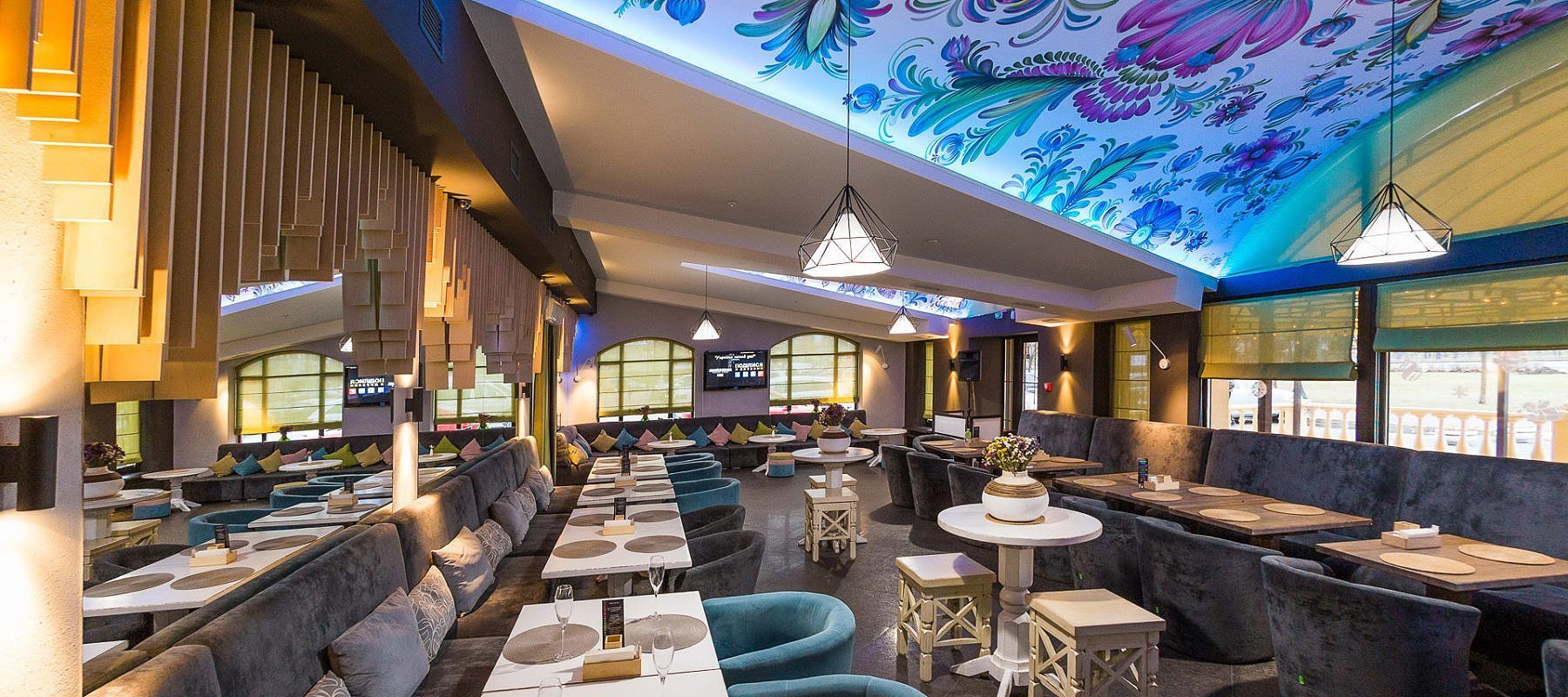 Елегантний інтер’єр розроблявся в концепції city folk – поєднання найактуальніших інтер’єрних рішень з традиційним уявленням про український стиль. Центральним елементом тут є петриківський розпис (петриківка) — намальований за всіма правилами без попередньо накресленого контуру і вимірювальних інструментів. Петриківський розпис — єдина форма культурної спадщини України, що потрапила до списку нематеріальної культурної спадщини людства ЮНЕСКО.
