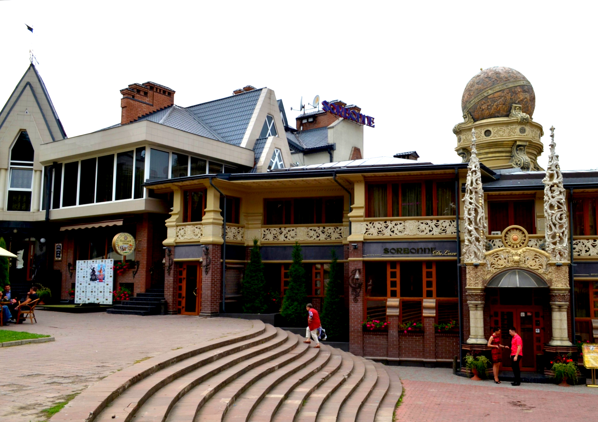 Ресторан «Sorbonne de Lux» працює щоденно з 12.00 до 24.00. В ресторані представлені європейська, китайська та українська кухні. Проводяться банкети, є жива музика. Високий рівень обслуговування, помірні ціни, смачна кухня та неймовірний інтер’єр є візитівками ресторану.