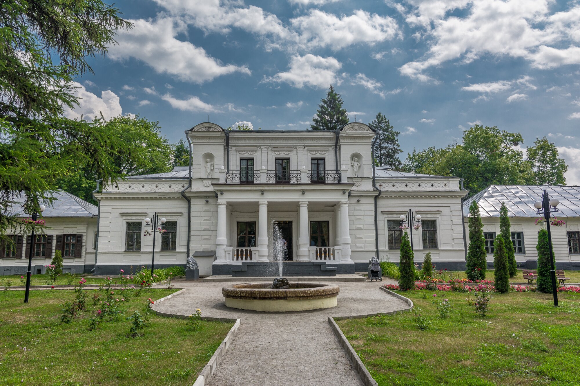 Садиба знаходиться в м. Тростянець і складається з трьох будівель: головного будинку, будинку, в якому жив і працював композитор Петро Чайковський, круглий двір. Раніше на цьому місці знаходилась садиба Надаржанських. У 1832 році її господарем став Василь Голіцин. Він перебудував маєток на новий в класичному стилі з парком навколо. Саме на запрошення його сина Олексія юди приїхав гостювати Петро Чайковський. І саме тут композитор створив свою першу симфонічну увертюру «Гроза».