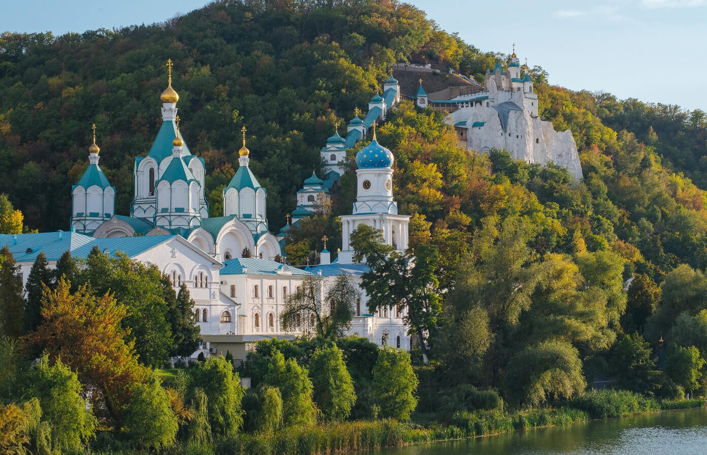 Святі гори являють собою крейдяні виступи, які відомі з 1526 року. Однак перші поселення тут з’явилися ще в часи Київської Русі, й першим печерам уже понад 1000 років. У різні періоди це місце слугувало укриттям то від іконоборців, то від монголо-татар, а в 16–17 століттях сюди переселялися ченці з Почаївської лаври, захопленої уніатами. Понад 2 століття – із середини 16-го століття до 1788 року – монастир слугував місцем дислокації військової сторожі Московського царства. Своє релігійне значення Святі гори повернули лише в 1844 році.