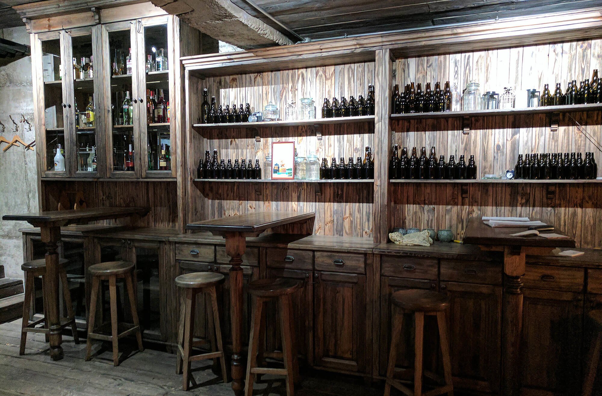 Тут можна випити, поїсти, поспілкуватися. Відкрита кухня, страви в хоспері, великі дерев'яні столи, які можна переставляти під компанію будь-якого розміру, палубна дошка на підлозі, брутальні стіни і приглушене світло.