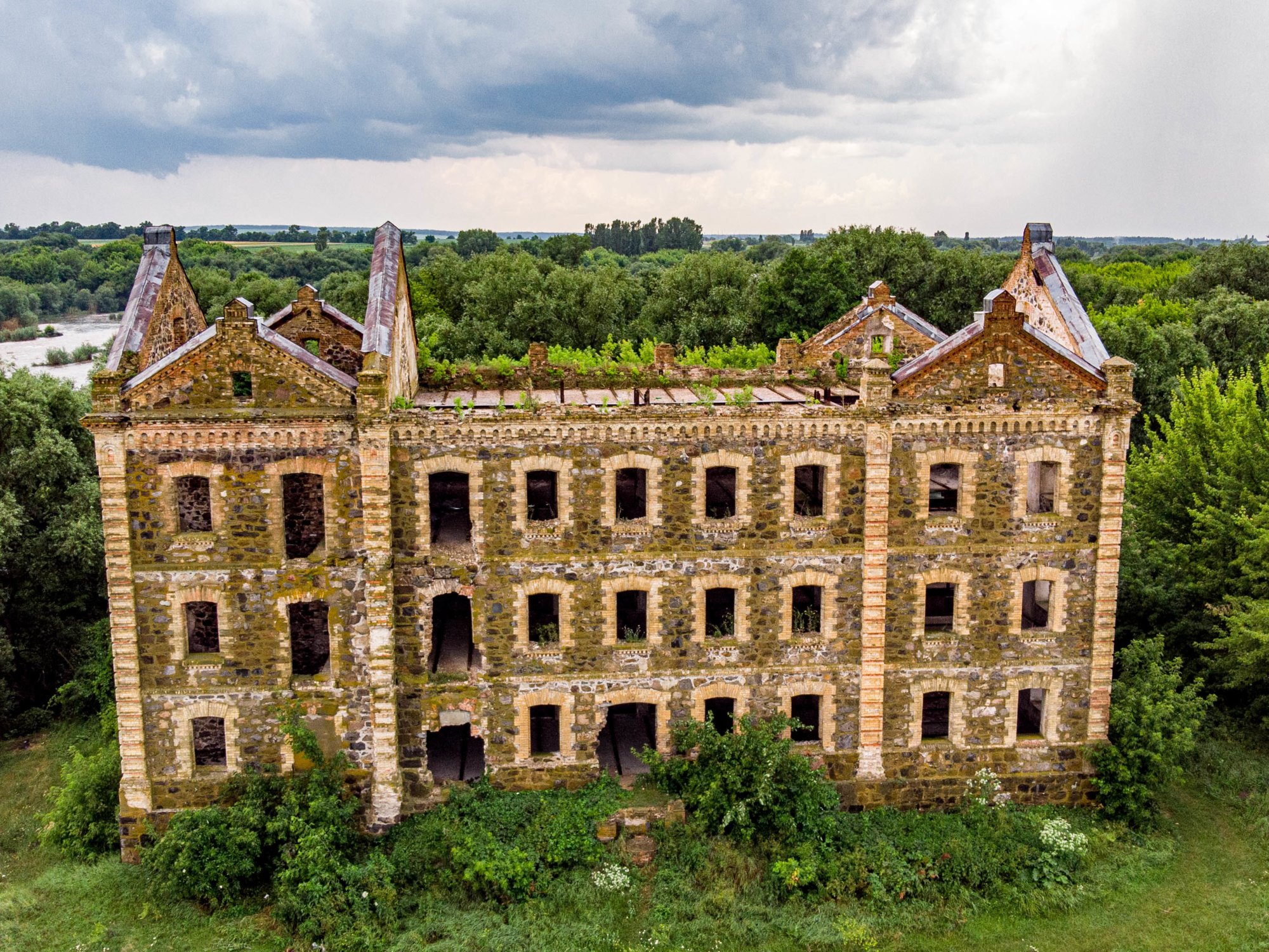 Сьогодні триповерхова кам’яна будівля, яка зовні схожа скоріше на замок, аніж на млин, напівзруйнована.