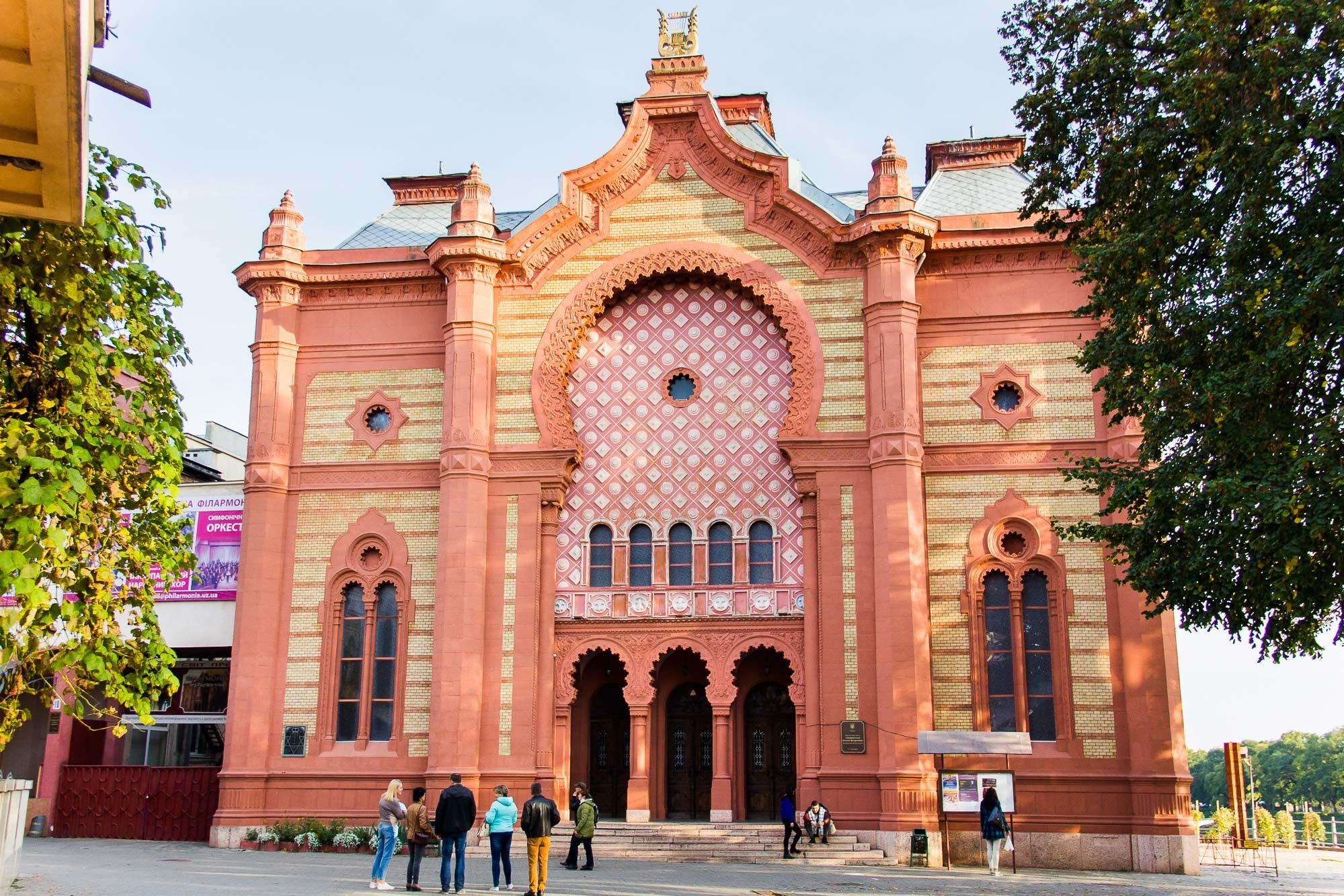 Друга світова війна та прихід Радянської влади внесли свої корективи в історію синагоги. Євреїв у післявоєнний період у місті майже не залишилося, до того ж релігія була не в пошані у радянської влади, тому в 1947 році будівлю передали недавно створеній філармонії. В 1957 році синагога стала філармонією назавжди втративши свої архітектурні елементи. Так зірку Давида заклали цеглою, на її місці зробивши просто кругле віконце, зникли балкон та декорації на даху, а скляний купол накрили залізом. В середині облаштували вестибюль та зробили другий поверх, де і розмістилася концертна зала. В 1974 році поряд побудували нову будівлю філармонії, яка з’єдналася зі старою коридором. Внутрішнє оздоблення хоч і збереглося, але не повністю, до того ж значно постраждала акустика. Зараз в середину можна потрапити, відвідавши якийсь концерт, а заодно і послухати орган, встановлений тут в радянські часи.